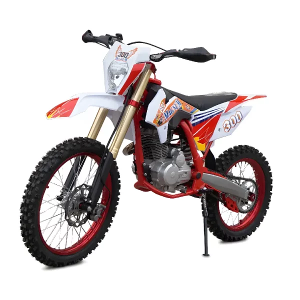 Motorka 300 ccm je vybavená elektrickým štartérom aj klasickým kick štartom, LED svetlom, tachometrom, zrkadlami, chráničmi rúk a športovým výfukom z nerezu. Dlhé pohodlné sedadlo a zosilnený rám zaručujú komfort aj pri dlhších jazdách.